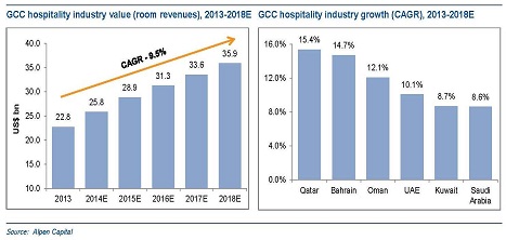 “The GCC economies are well on their way to recovery from the global economic crisis. With the recent wins in mega events like the Qatar FIFA World Cup 2022 and the Dubai World Expo 2020, the region is gearing up for an increase in tourist arrivals. Due to the forecasted increase in demand, the sector is going through capacity expansion as well as increasing investment into infrastructure. The industry is expected to sustain this growth momentum supported by the regional governments’ initiatives to grow the sector, international tourist arrivals, especially those from the Asian region, and growth in the MICE segment among other factors”, says Sameena Ahmad, Managing Director, Alpen Capital