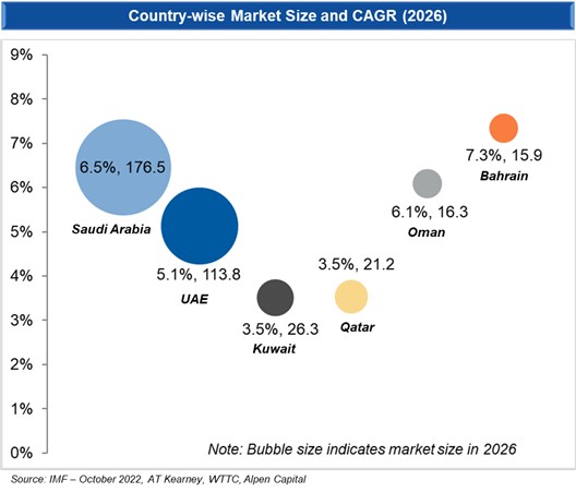 The industry is expected to see renewed growth largely driven by the anticipated rebound in economic activity, increase in population, upcoming mega events and rising adoption of digital technologies. Regional governments are also making significant investments to enhance the leisure and entertainment sector while also enhancing the tourism and hospitality infrastructure as it witnesses influx of tourists post the pandemic.