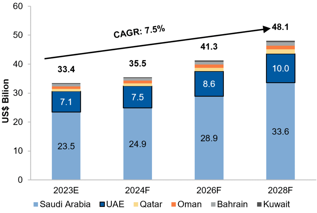 According to Alpen Capital, the GCC hospitality sector revenue is expected to grow at a CAGR of 7.5% from 2023 to 2028, reaching approximately US$ 48.1 billion by 2028. This robust growth is fueled by the unified efforts of the GCC countries in prioritizing hospitality as a key element of their long-term diversification strategies. Furthermore, steady economic growth, increasing tourist arrivals and a multitude of mega MICE and sporting events to be hosted in the region will support the projected growth.