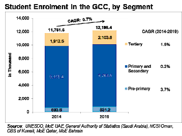 Government Initiatives to Boost Education Landscape: The focused efforts by the GCC governments, coupled with increased participation by the private sector, is transforming the education sector. Subsequent improvement in quality and management is likely to enhance overall operational efficiencies, thereby attracting higher investments and increased enrolments in the region.