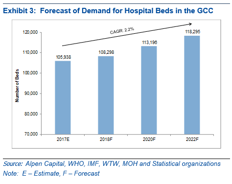 GCC healthcare industry continues to offer a wide gamut of investment opportunities. Though traditionally regional governments played an instrumental role in building the sector, shrinking oil revenues have slowed spending. At the same time, the role of private sector is increasing, encouraged by government incentives, mandatory health insurance and other reforms. Given the changing demographic and epidemiologic structure, mandatory health insurance, and government initiatives to encourage private sector participation, we expect to see steady growth in private sector investments in the healthcare industry, says Sameena Ahmad, Managing Director, Alpen Capital (ME Ltd).
